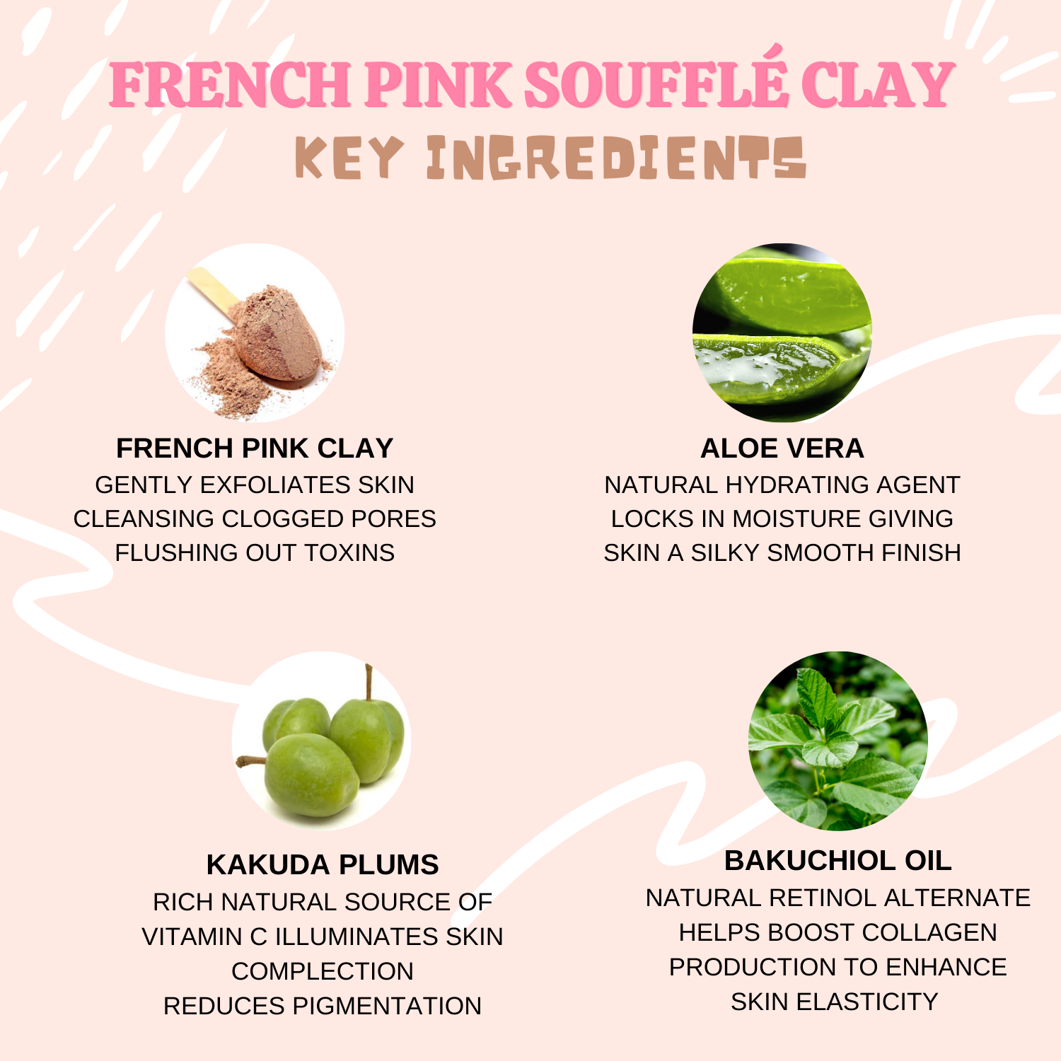 French pink clay is your go-to for exfoliation, pore-tightening and oil-absorption. formulated with French Pink Clay, Organic Rosehip, Chamomile, and Rose Petals, this gently exfoliating mask leaves skin feeling soft, smooth and radiant.