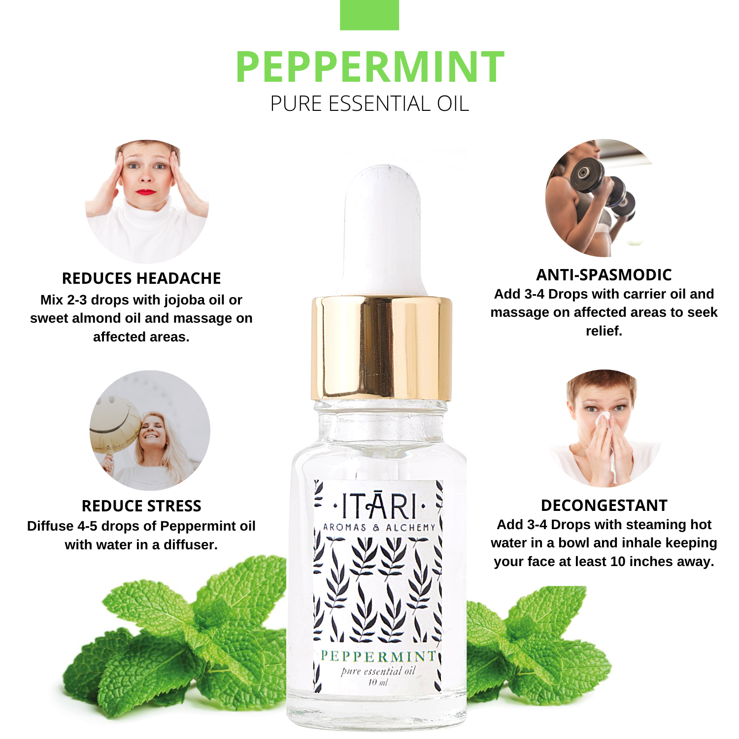 Reduces Stress : Diffuse 4-5 drops of Peppermint oil with water in a diffuser.