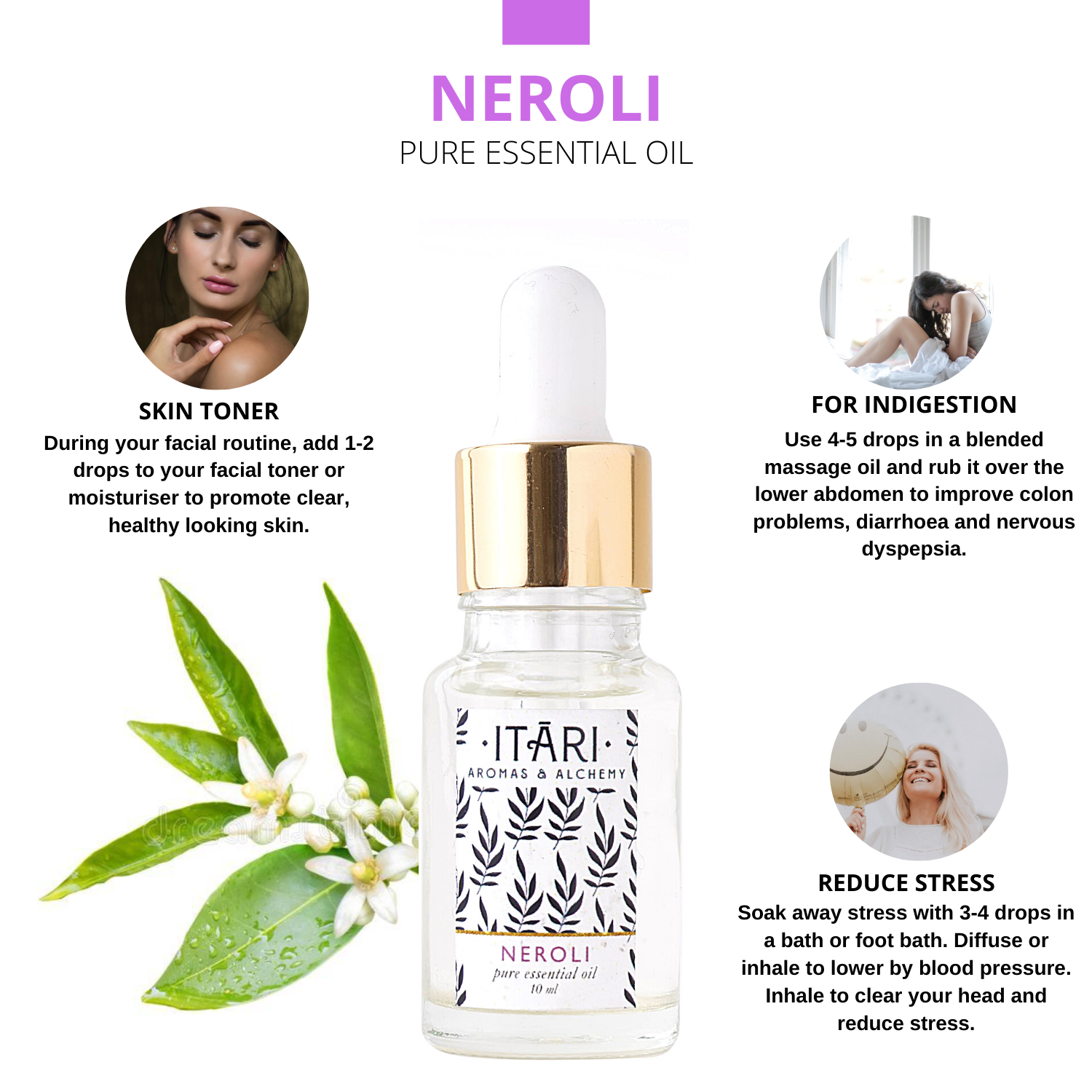 Cautions : Neroli Essential Oil may cause dermal sensitization in some people. Do not take internally.