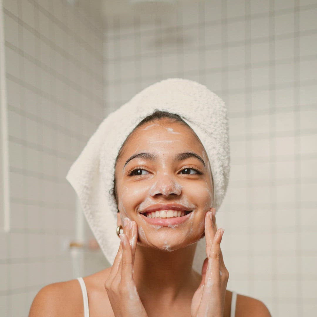- Cleanse your face as you would normally do, pat the skin dry with a towel.