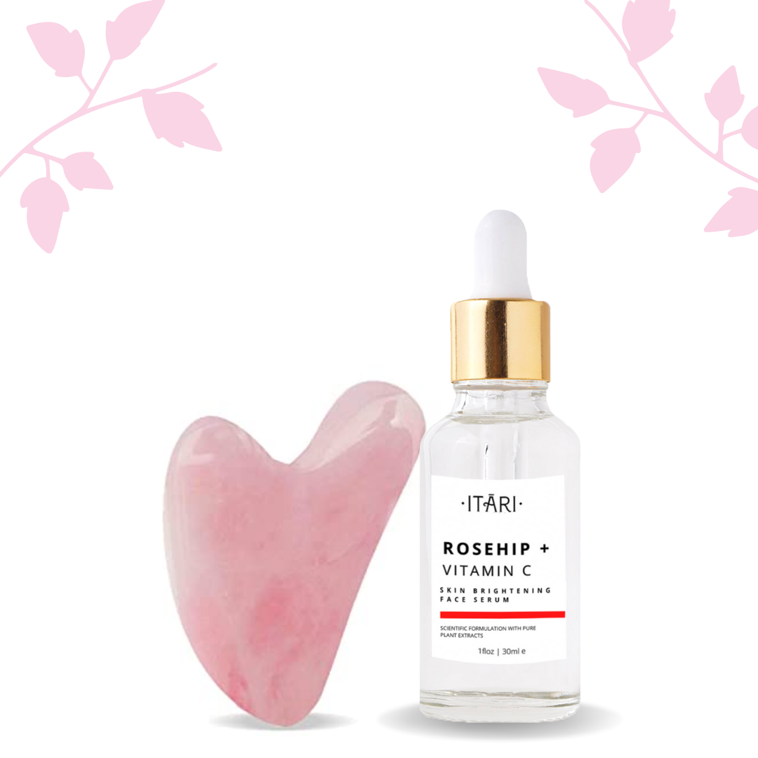 Rosehip + Vitamin C (20%) Brightening Facial Serum (10ml) & Quartz Gua Sha ||| COMBO ||| With Certificate